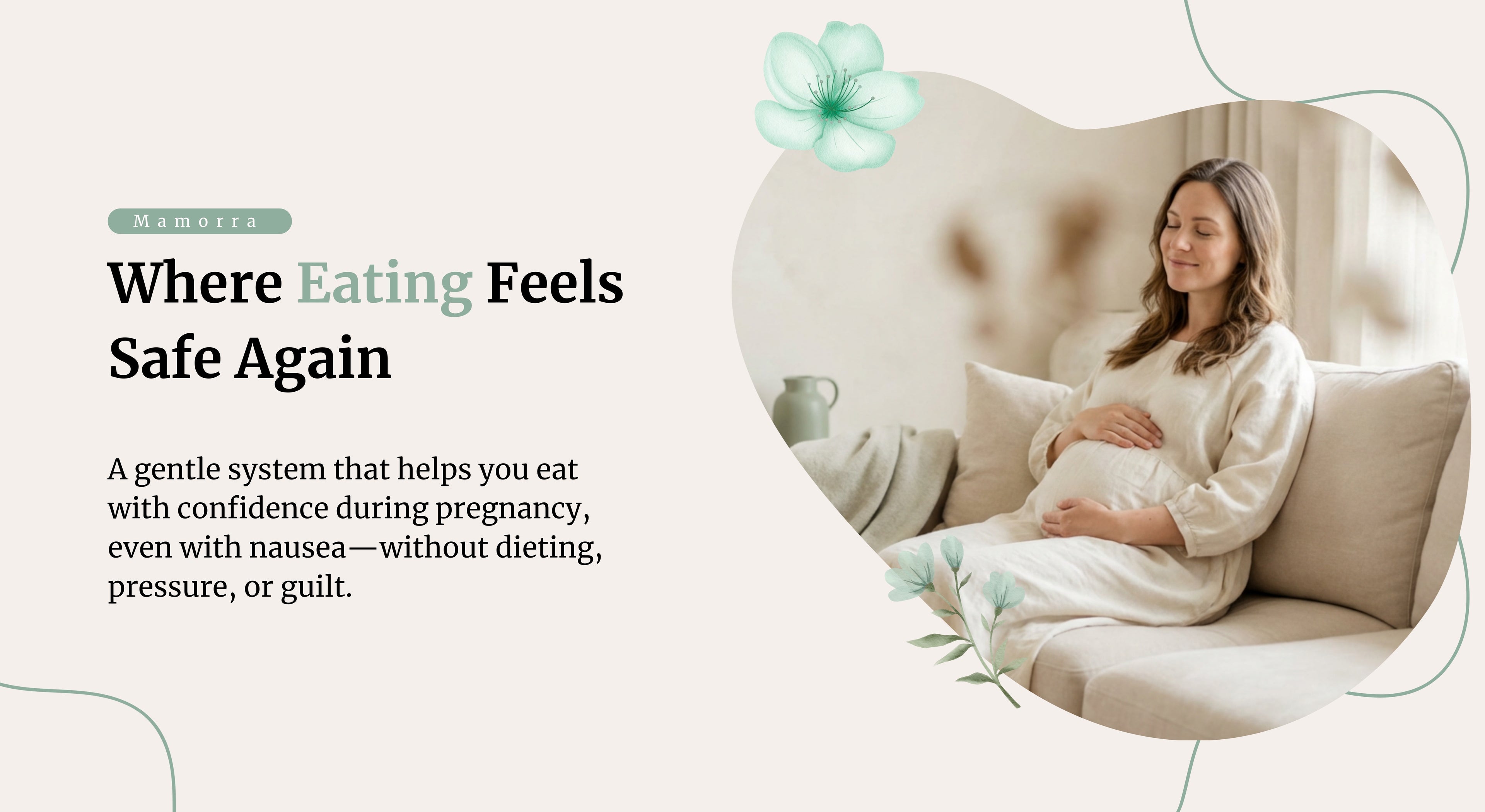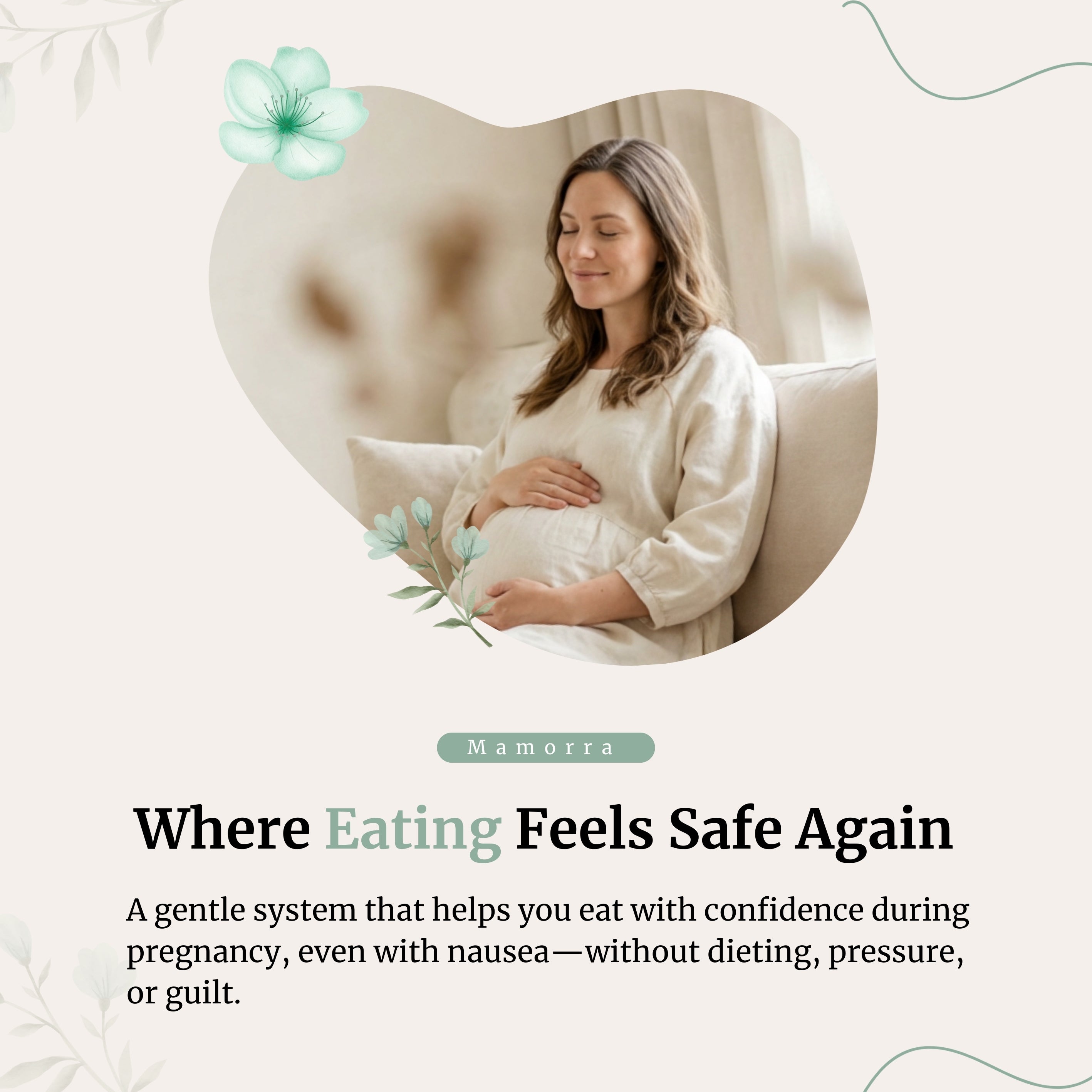 Mamorra helps you eat with peace of mind during pregnancy — even with nausea, without dieting or guilt.